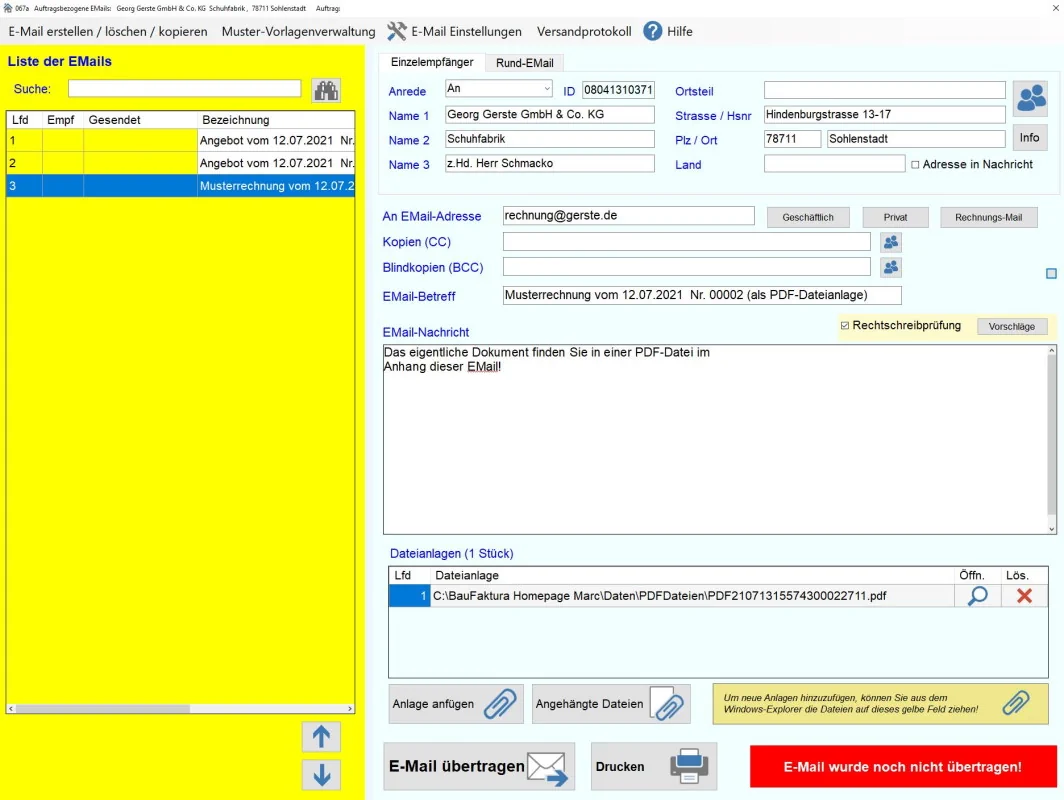 Das Beste am E-Mail-Modul ist: Es wandelt Ihre Dokumente für den Versand in PDF-Dateien um, ohne dass Sie überhaupt etwas davon merken – geschweige denn Arbeit damit haben. Somit bekommen Ihre Kunden die Informationen im universellen Dateiformat.
