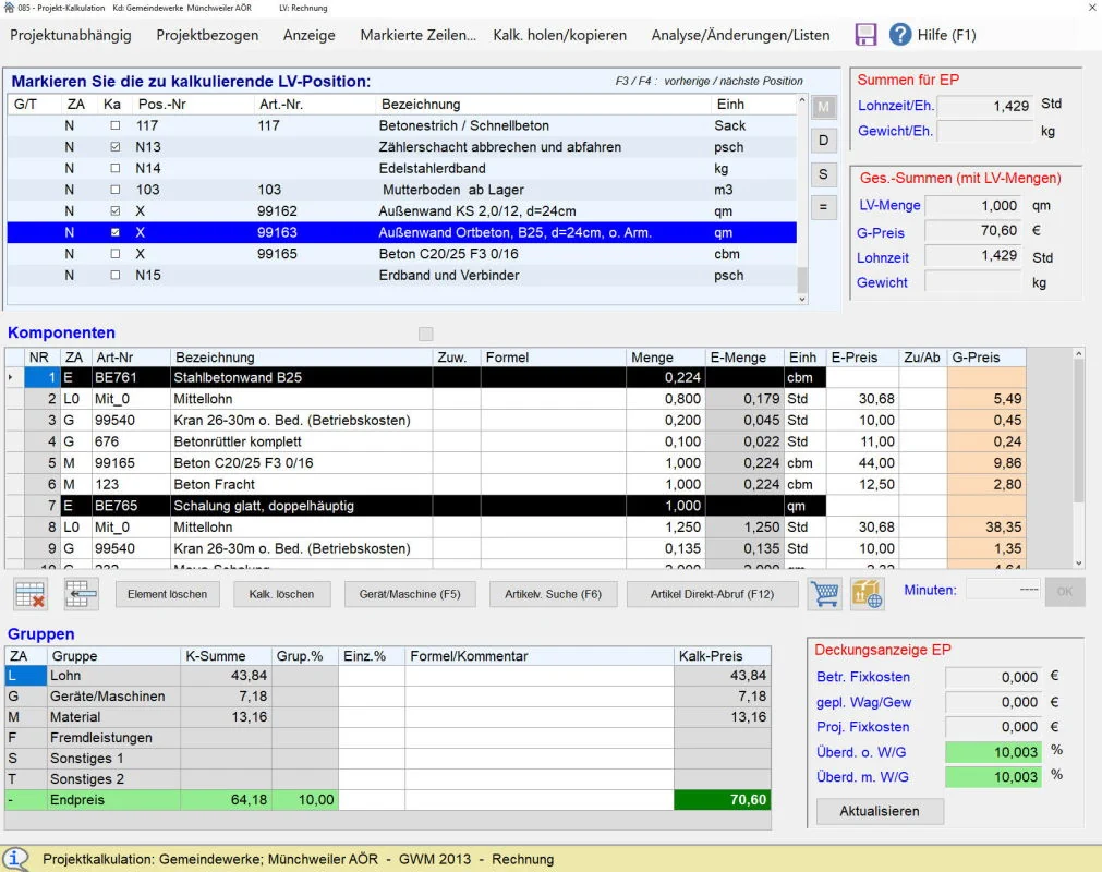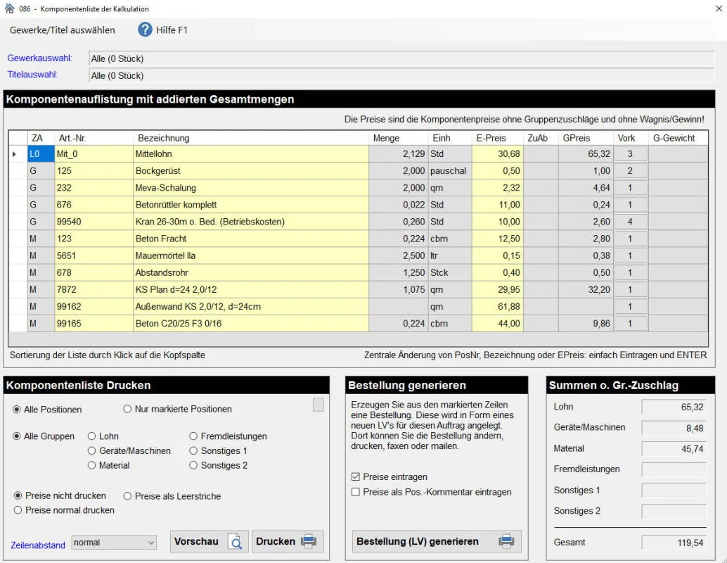 baufaktura unterstützt Sie bei der Kalkulation durch:
