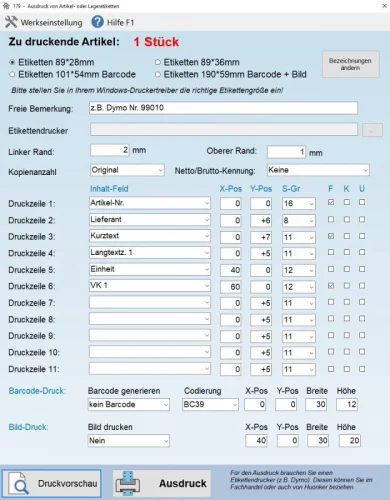 - Etikettendruck für Ihre Lagerartikel. Die Etiketten können Sie an Ihrem Lagerregal anbringen.